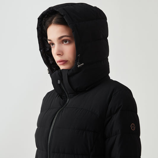 It is a light, warm & stylish women puffer. Water-resistant fabric is a plus and machine-wash is a bonus! I love the puffer coat so l give 5 starts. The price and quality are great as well!