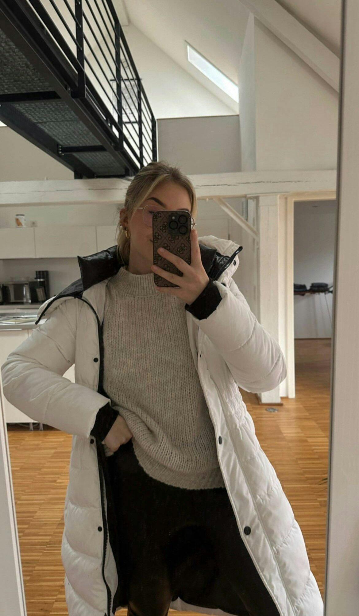 Love the longer design of this to keep my legs warmer! It’s very comfy and not too puffy or voluminous haha. I really love the colour of the white and the hood doesn’t get in the way either. Great quality all around